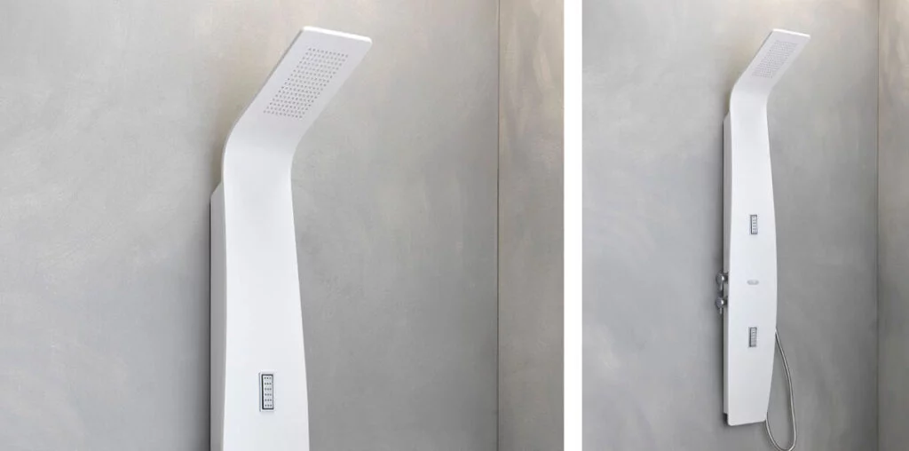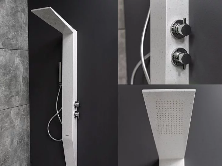 Kerrock is a material known for its durability, moisture resistance and ease of cleaning. When choosing a Kerrock column for your bathroom, it is important to take into account the dimensions of the room in which it will be placed and to decide on a suitable model to suit your needs and preferences. There are various models available, differing in size, shape, colour and functionality. Among the most popular models are Kerrock columns with massage nozzles, which provide a relaxing body massage.