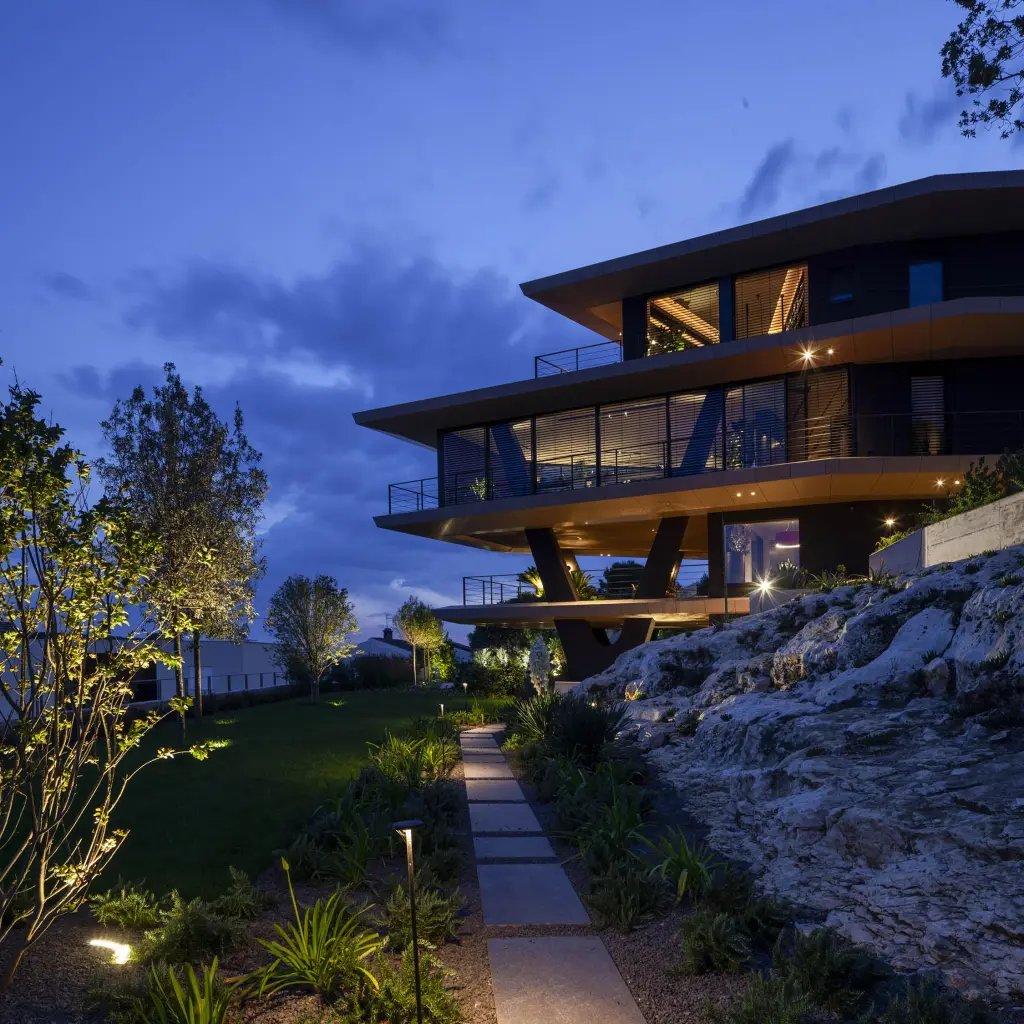 At the foot of a Roman quarry, a house whose façade is not only a protection, but a dialogue with its surroundings – light, shadow and durable material are woven into each façade panel.