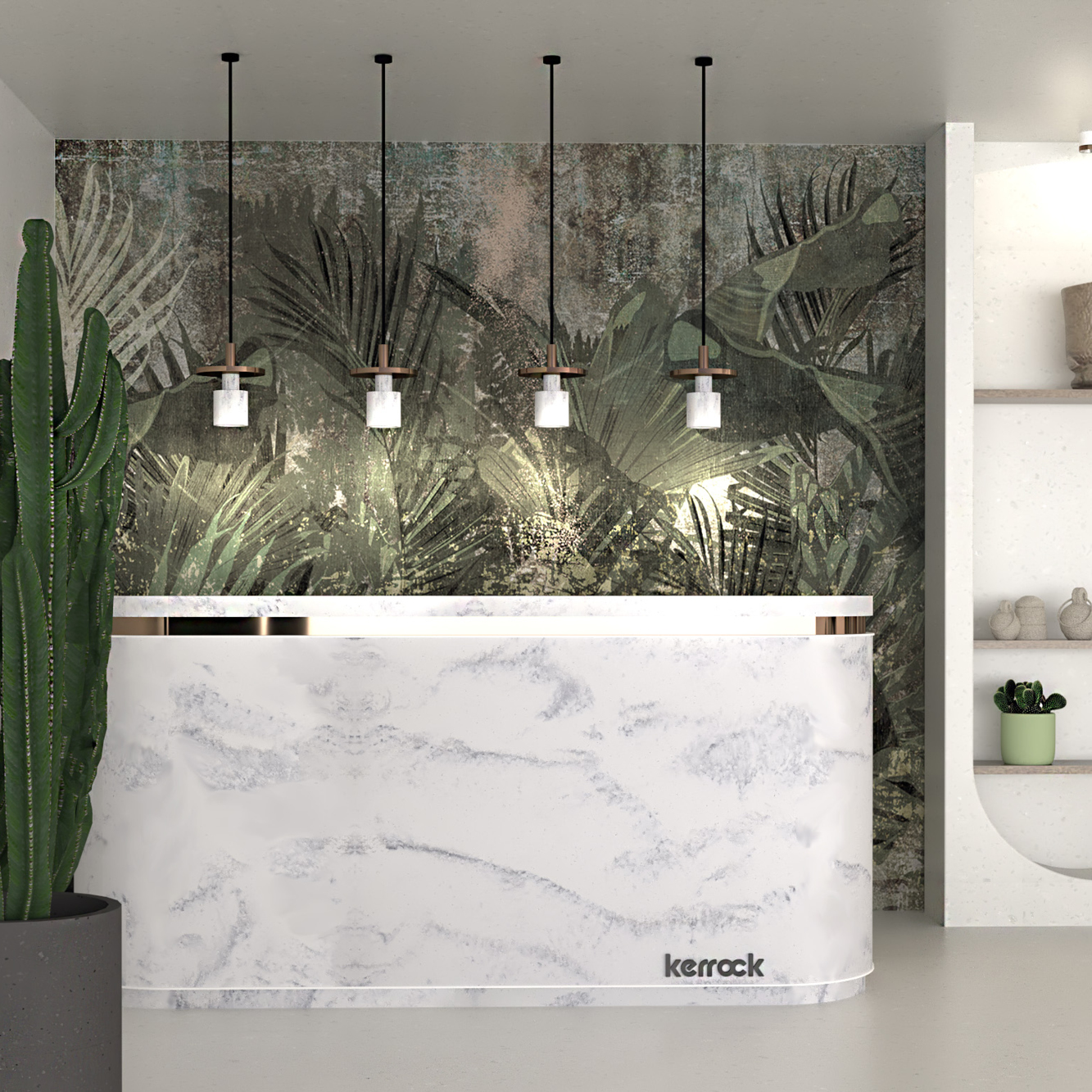 Kerrock is perfectly suited to a wide range of environments: reception areas and front desks, conference tables, work surfaces, restrooms and kitchens, wall cladding, and furniture fronts. Thanks to its durability and recyclability, it is also a sustainable choice that aligns with environmental standards.